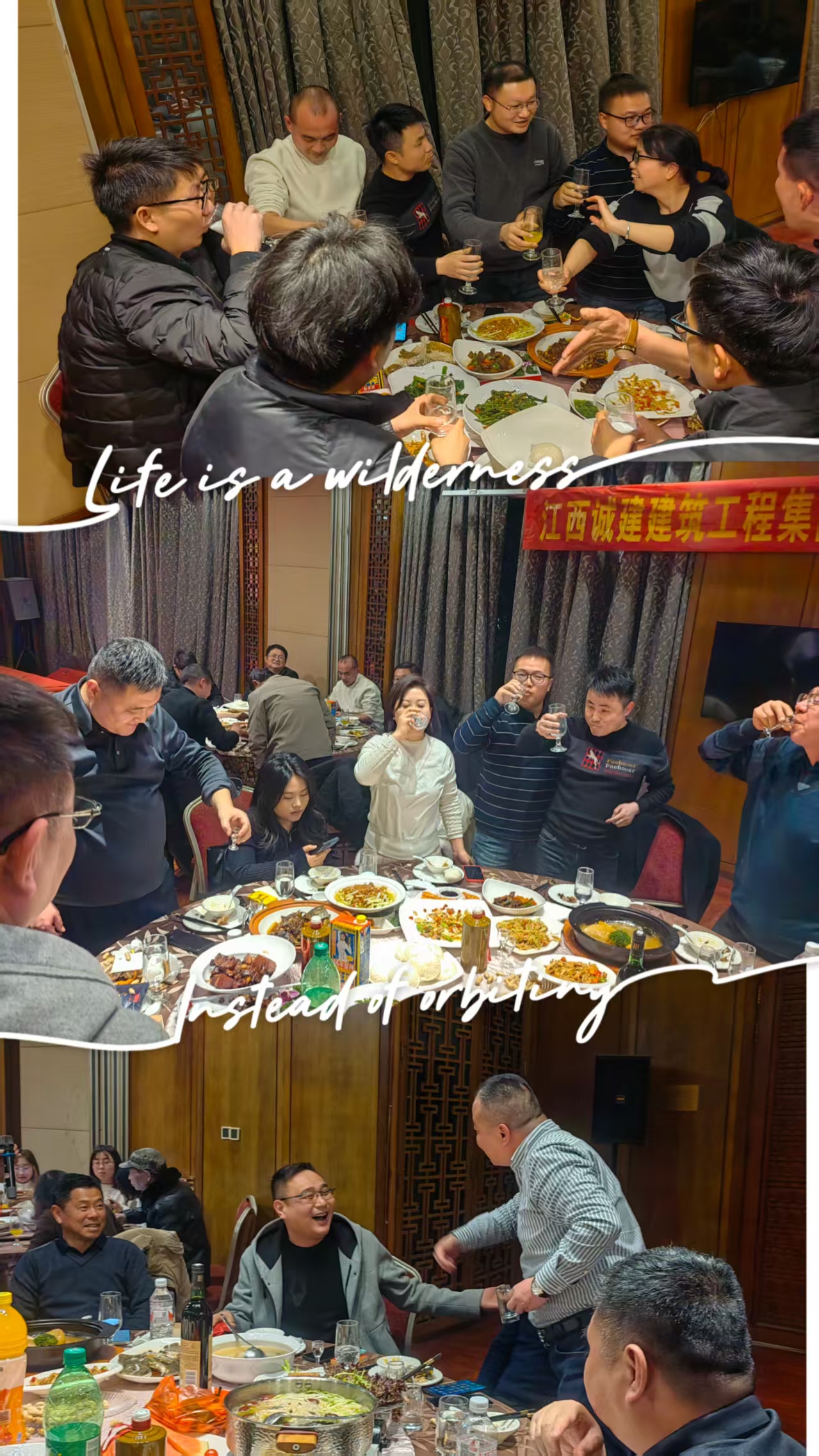 當晚,公司舉辦了盛大的新春聚餐。晚宴上,各部門員工歡聚暢談,共享美酒佳肴,現場氛圍溫馨熱烈。穿插其間的互動環節與節目表演,更將活動推向高潮,充分展現了江西誠建人團結向上的精神風貌。